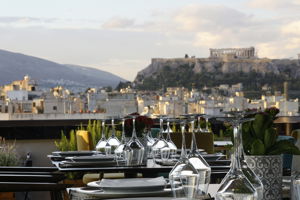 - Rooftop uitzicht op Acropolis en skyline