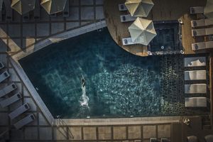 zwembad en rooftop bar waren moeilijk te vinden, omdat het in verschillende blokken is gebouwd.