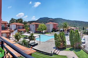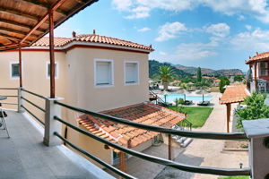 Yakinthos garden heeft mooie ruime kamers met een groot terras of balkon. Prima airco, in ons appartement 1 in de kamer en 1 in de slaapkamer. Kosten €10,- per dag.