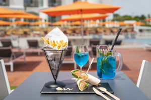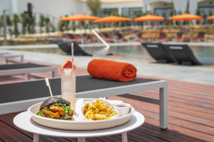 We hebben alleen ontbeten in het hotel en dit was prima. Lekkere knapperige broodjes, genoeg fruit, verschillende koffies, cacao enz uit automaat maar ook vers gezette koffie. Het zwembad is erg mooi,Bij de foodtruck kun je heerlijke cocktails bestellen. Het strand is op loopafstand maar verder is er weinig in de buurt. Supermarkt en enkele restaurants op loopafstand. Toch is een auto aan te bevelen natuurlijk om plekken te bezoeken maar ook om inde avond restaurants te bezoeken. O.a Salgados museo is erg goed!