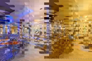 Hotel was prima maar opgemerkt moet worden dat er lange rijen voor het eten stonden en je moest wachten voor een tafeltje . Eten vaak niet goed warm. Ligbedden te weinig voor de hotel bezetting.