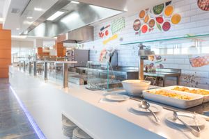 Het hotel was redelijk verouderd maar dat zijn de hotels in Spanje over het algemeen... voor luxe hotels moet je naar Turkije.. maar daar blijf je ook de hele dag hij het hotel. Wij hadden all in maar doen dit niet meer.. meer buiten de deur gegeten als in het hotel