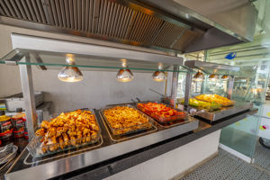 Eten niet warm en niet erg afwisselend alles was bijna t zelfde en lauw of koud of je had niets meer