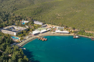 Half uurtje vanaf vliegveld en Bodrum. In resort is alles voor een weekje zonvakantie. Geen dorpje/boulevard of id gemist. Taxi’s niet duur.