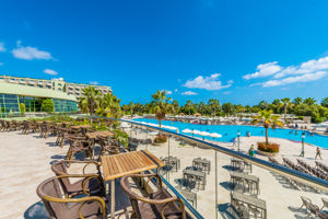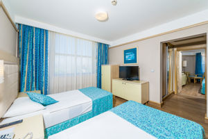 Mooi Hotel. Direct aan het strand. kamers schoon maar wel gedateerd meubilair. Bedden waren erg hard. Wat voor mij niet prettig was( last van mijn ribbenkast) maar voor andere juist weer wel. Veel keus in het eten, waarbij het raadzaam is wat later te gaan omdat het dan minder druk is en er altijd eten genoeg is.Leuk was dat het Aquapark aan de overkant is en gratis toegankelijk en je daar ook van je all inclusief concept kan genieten. Zeker en aanrader.