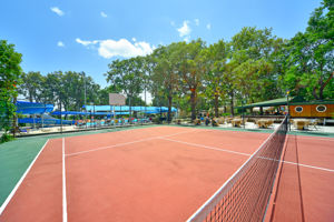 Strand was niet ver lopen, genoeg winkeltjes in de buurt....strand mooi met overdekte luifels.